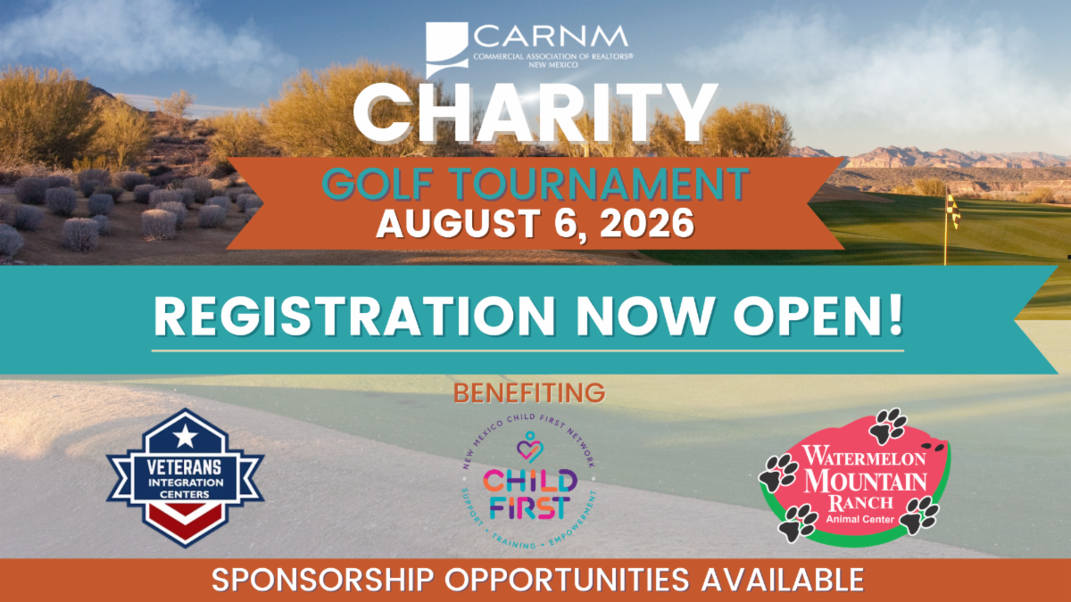 The Commercial Association of REALTORS® New Mexico invites you to the 2026 Annual Charity Golf Tournament at Twin Warriors Golf Club on Thursday, August 6, 2026. Whether you’re registering as an individual, bringing a full foursome or would like to sponsor, we hope you’ll join us for an incredible day of networking, golf, and community outreach.